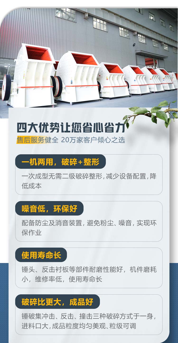 PCZ型重錘式破碎機(jī)具有入料粒度大、細(xì)碎比大和效率高等特點(diǎn)。可以破碎石料,一次成型,無需二級破碎整形過程,可以降低成本40%左右,耗能低,投資少。