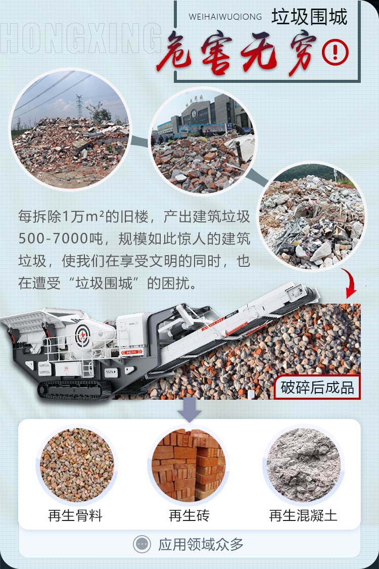 建筑垃圾移動破碎機,是近幾年國內(nèi)新興的一種處理設(shè)備,其以靈活的機身設(shè)計,多樣化的機型組合,智能環(huán)保的作業(yè)方式,在多數(shù)情況下已經(jīng)代替了固定建筑垃圾處理設(shè)備,廣泛應(yīng)用于國內(nèi)各個建筑垃圾處理場。
